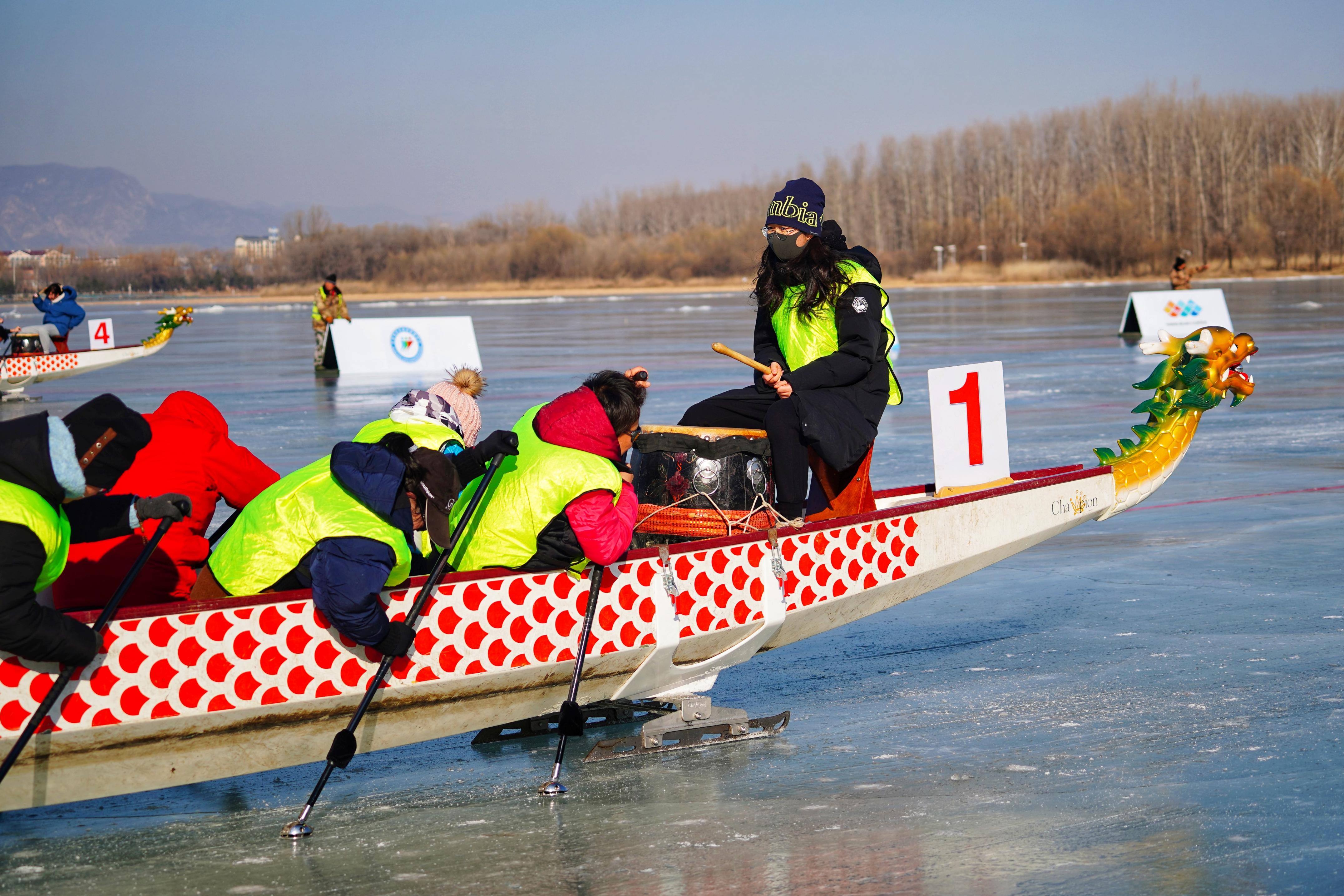 参加此次比赛的队伍,多数来自龙舟俱乐部和高校社团,还有一支延庆当地的消防队。绝大多数选手都是第一次划冰上龙舟,作为龙舟爱好者,大家重新认识了这项自己热爱的项目,更感受了冰雪运动的独特魅力。“冰龙舟让龙舟更多元化了,也让我们看到了龙舟不一样的魅力和色彩。”水曲酷玩队划手马乔阳说。他的队友祝瑞瑶则兴奋地表示,很高兴主办方“把龙舟带到了这么美的冰面上”。